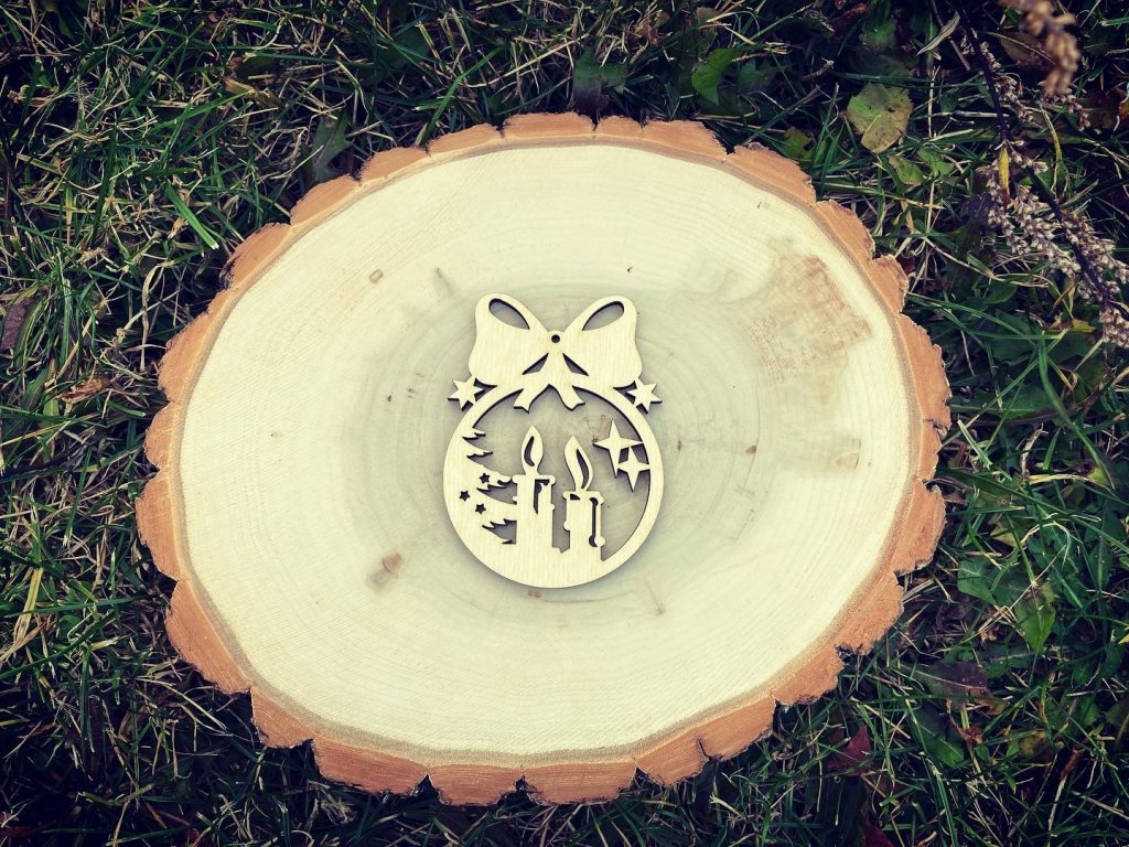 • dřevěná vyřezávaná baňka na vánoční stromeček