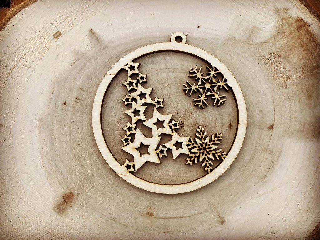 • dřevěná vyřezávaná baňka na vánoční stromeček