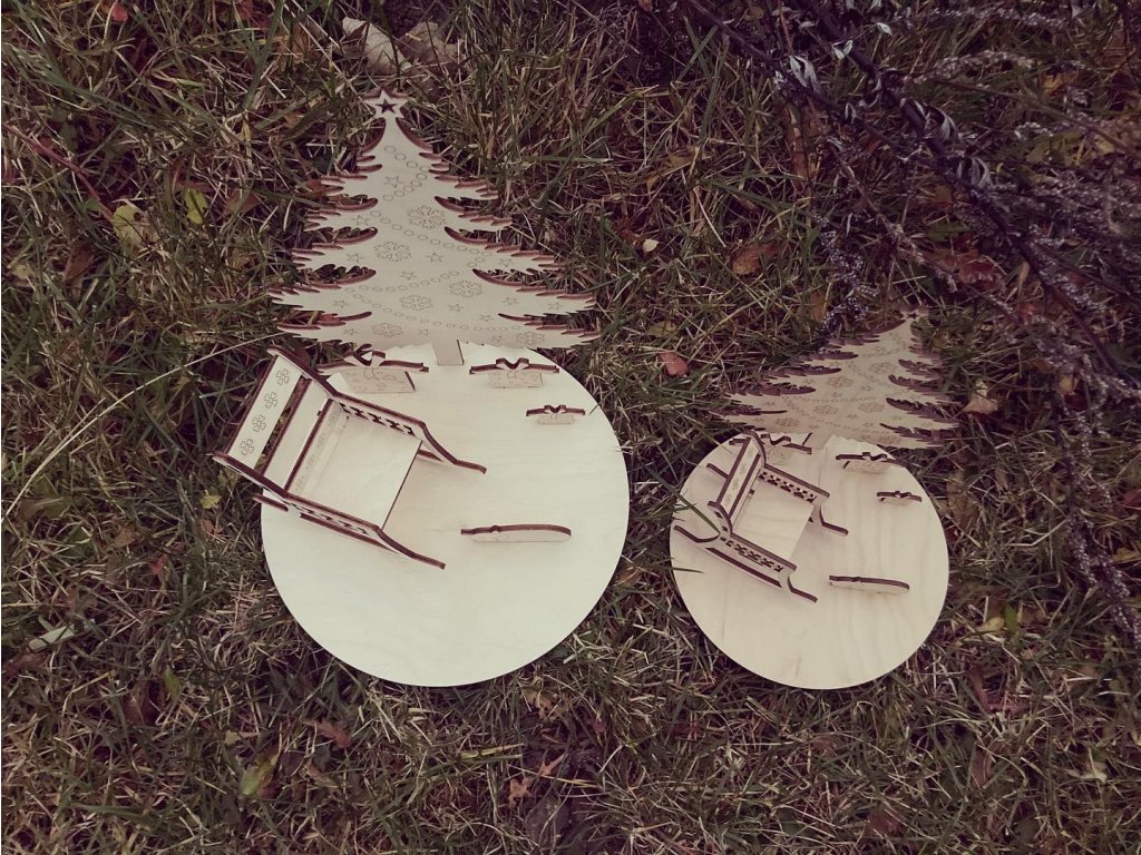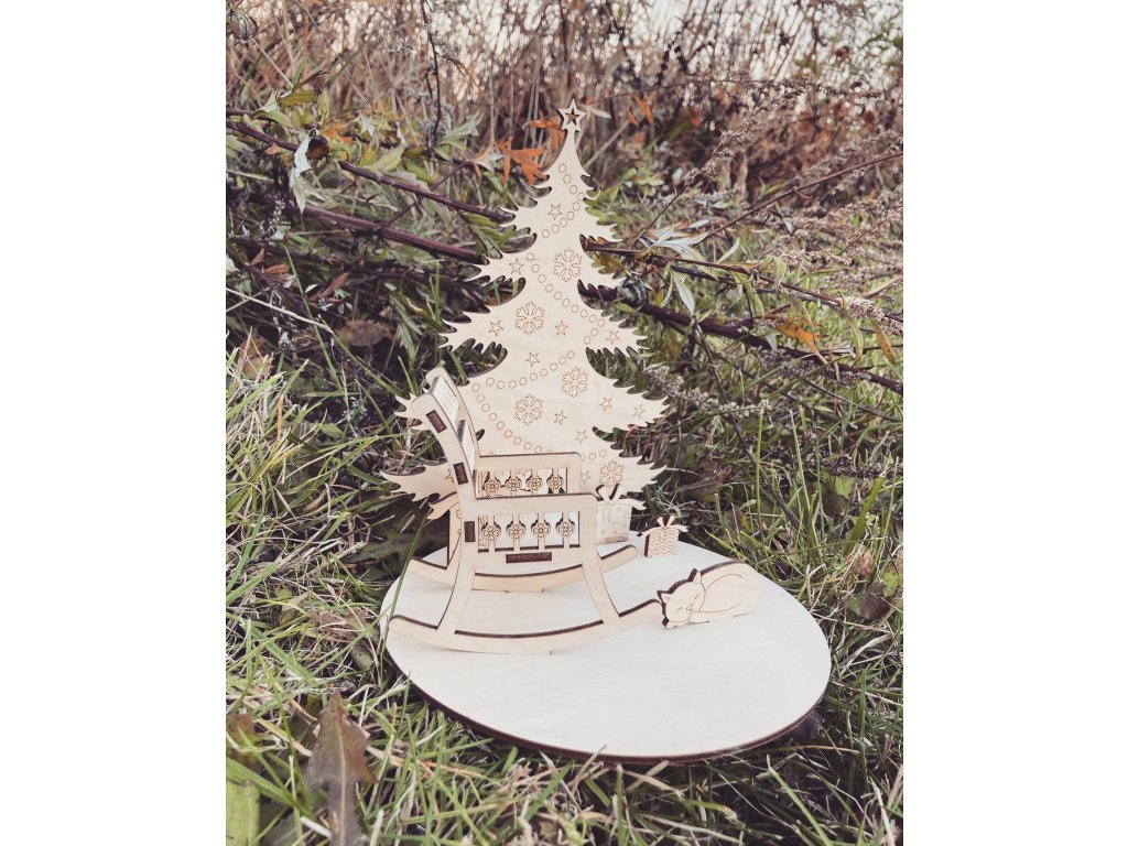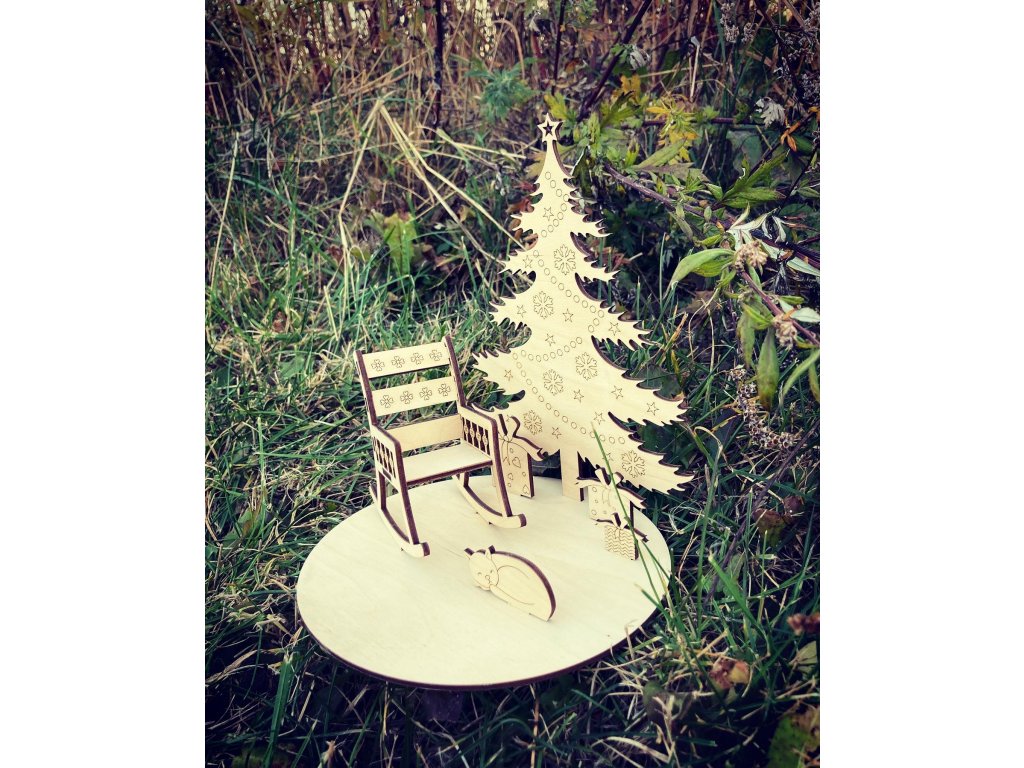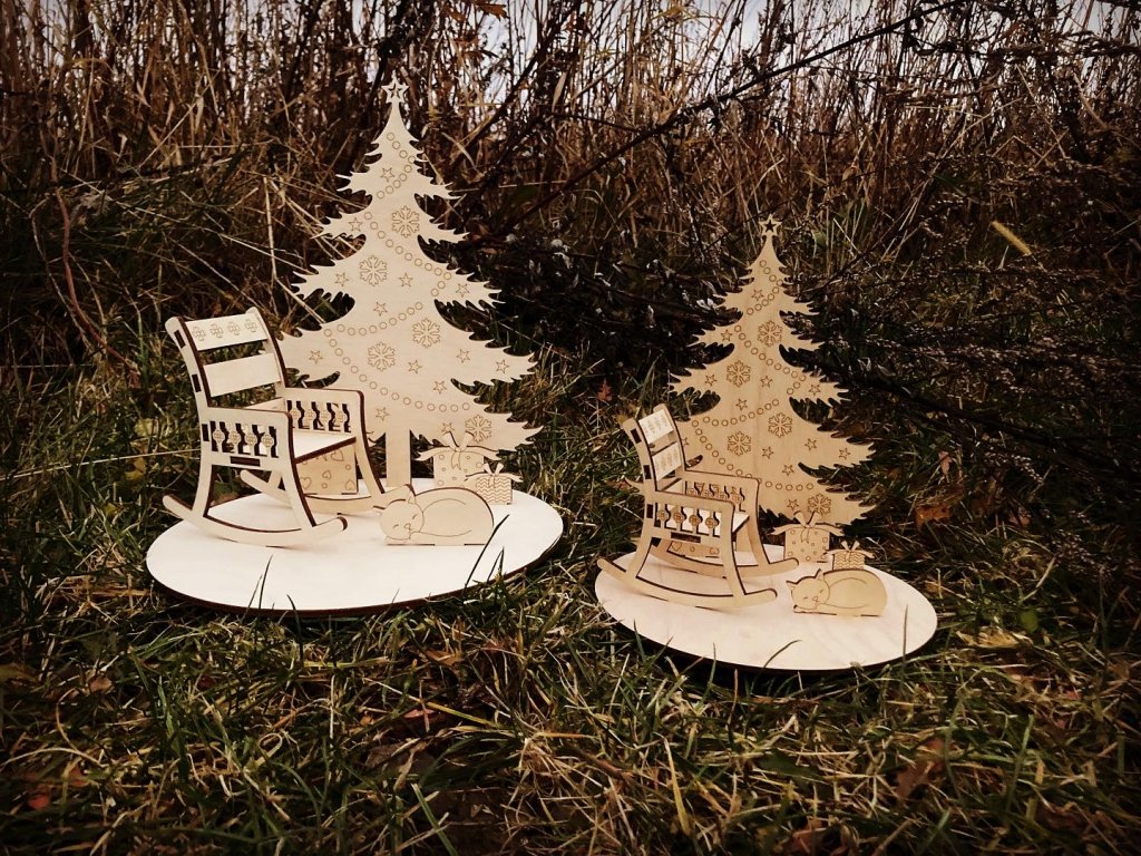 - Originální dekorace s houpacím křeslem, stromečkem, kočičkou a dárečky