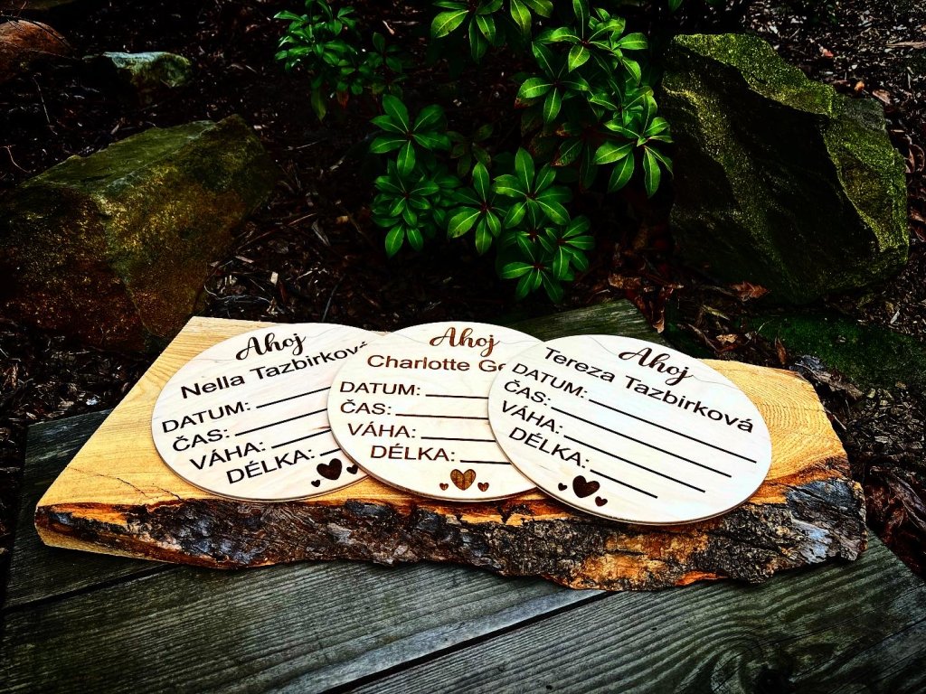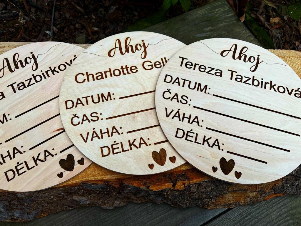 - Jedinečný a trvalý doplněk s údaji o narození miminka - jméno, datum, čas, váha a délka