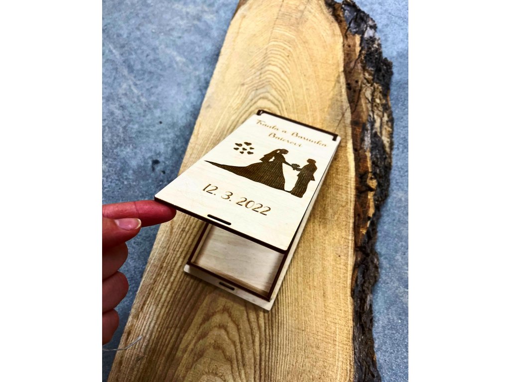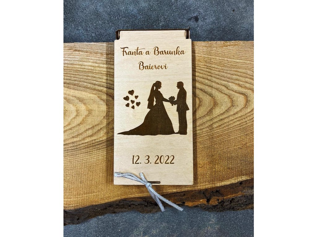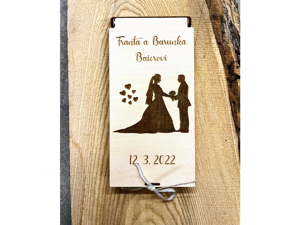 Motiv - SVATBA Dřevěná dárková kazeta, kapsa, obálka na peníze Originální darování peněz Motiv, text, věnování, obrázky - Vše je možné přizpůsobit na míru právě Vám :-)