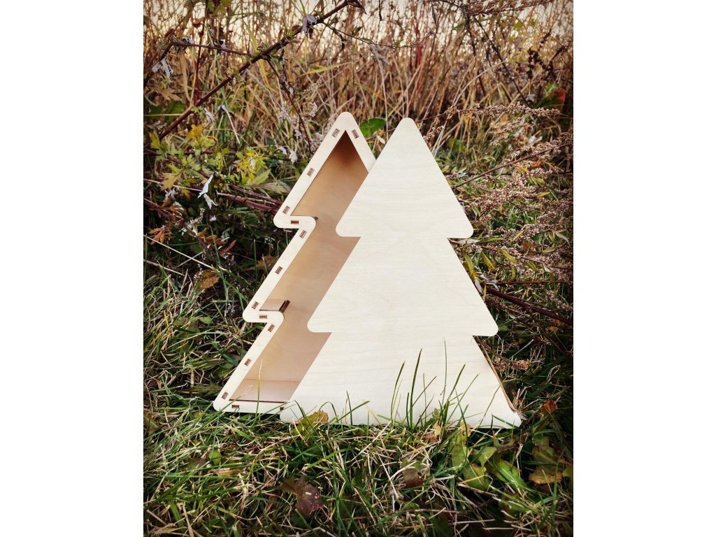 Krásný moderní vánoční stromeček a baňkami. Včetně stojánku, různé velikosti. Vánoční dřevěná dekorace, NON TOXIC.