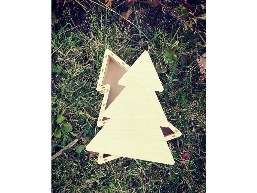 - Dřevěná krabička ve tvaru stromečku