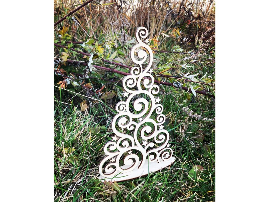 Krásný moderní vánoční stromeček a baňkami. Včetně stojánku, různé velikosti. Vánoční dřevěná dekorace, NON TOXIC.