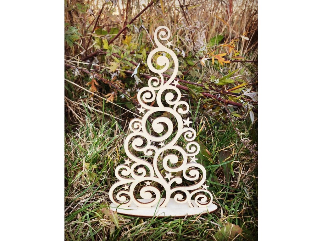 Vánoční stromek s hvězdami. Dřevěná dekorace na postavení včetně stojánku, různé velikosti. Znovupoužitelné, ekologická dekorace, NON TOXIC, ručně broušeno.