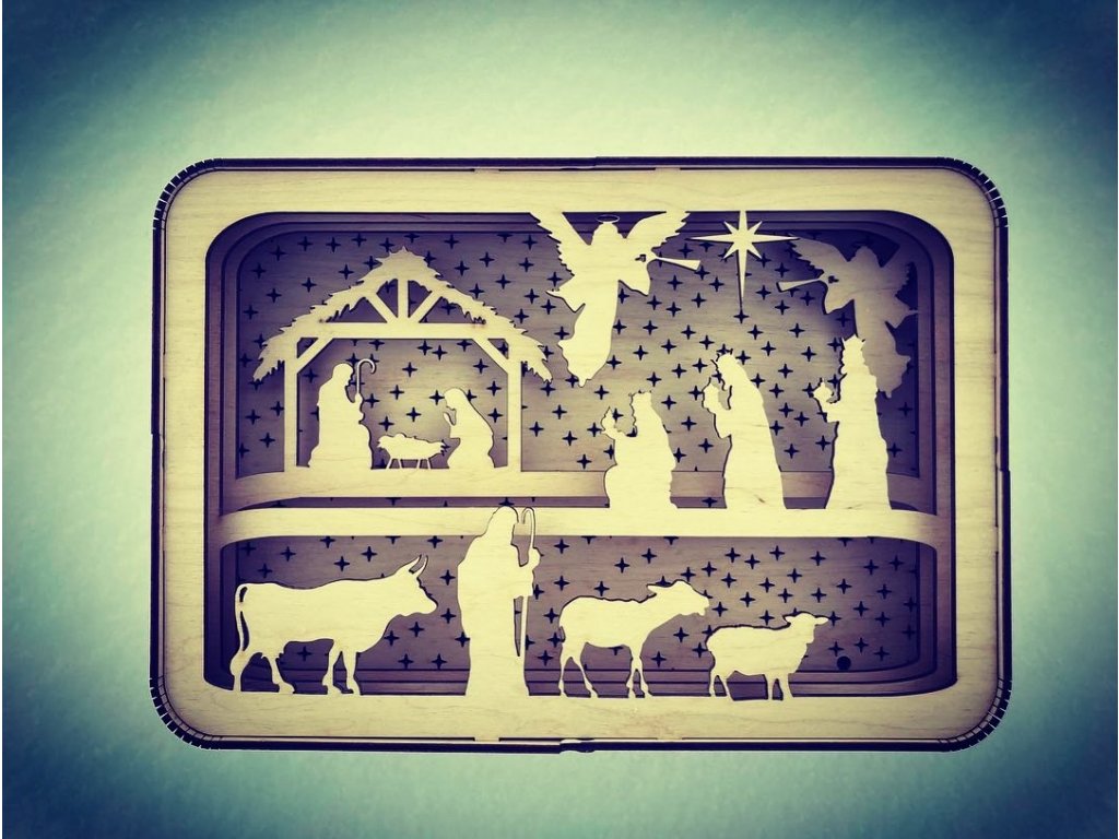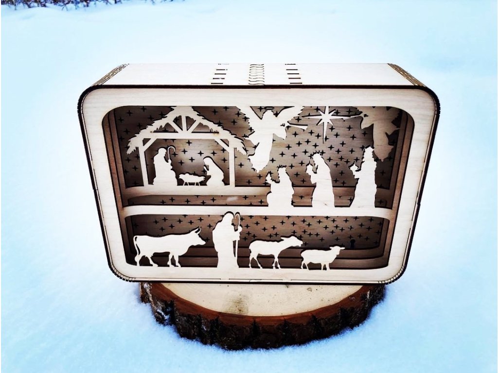 - dřevěná lampa střední velikosti s motivem Betléma