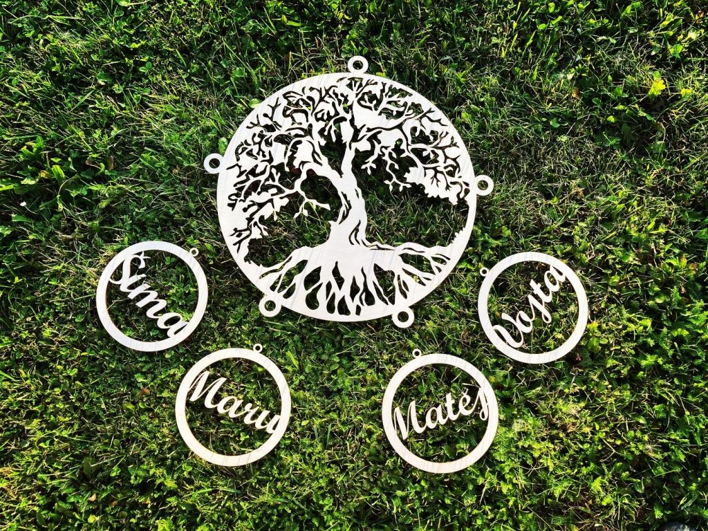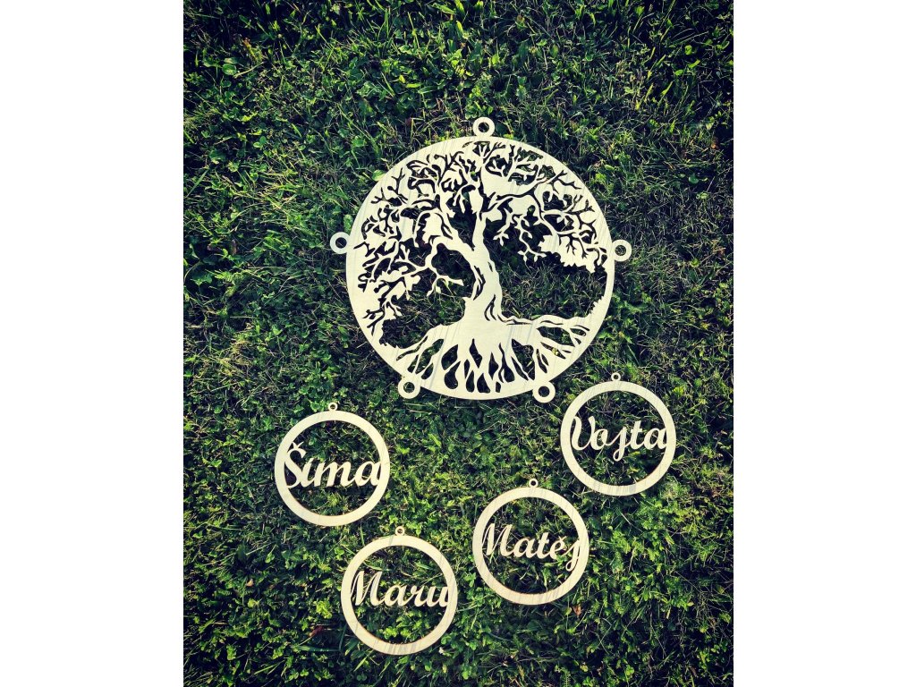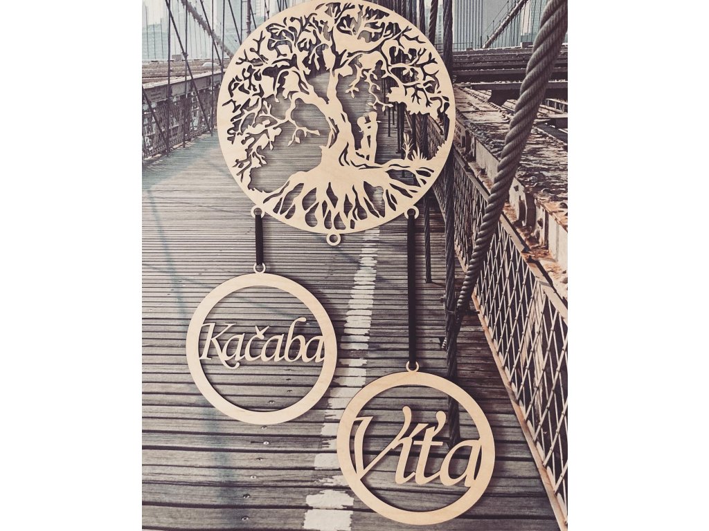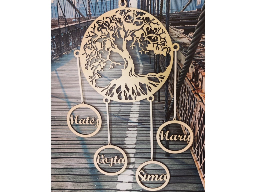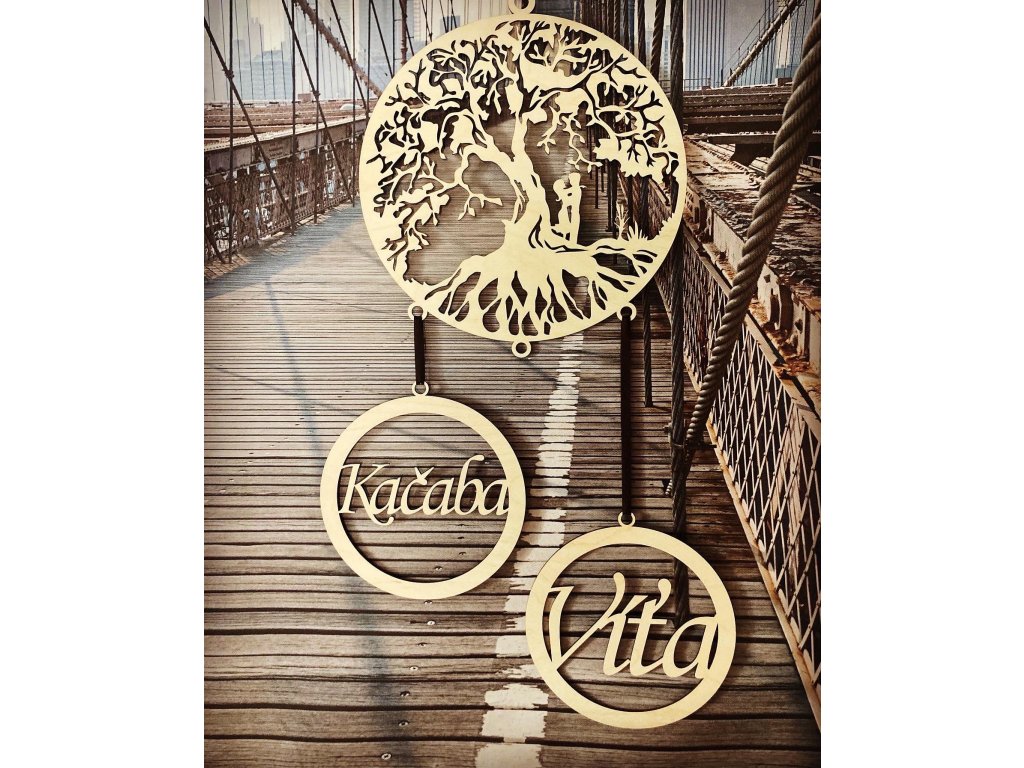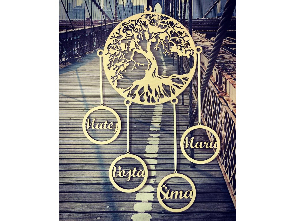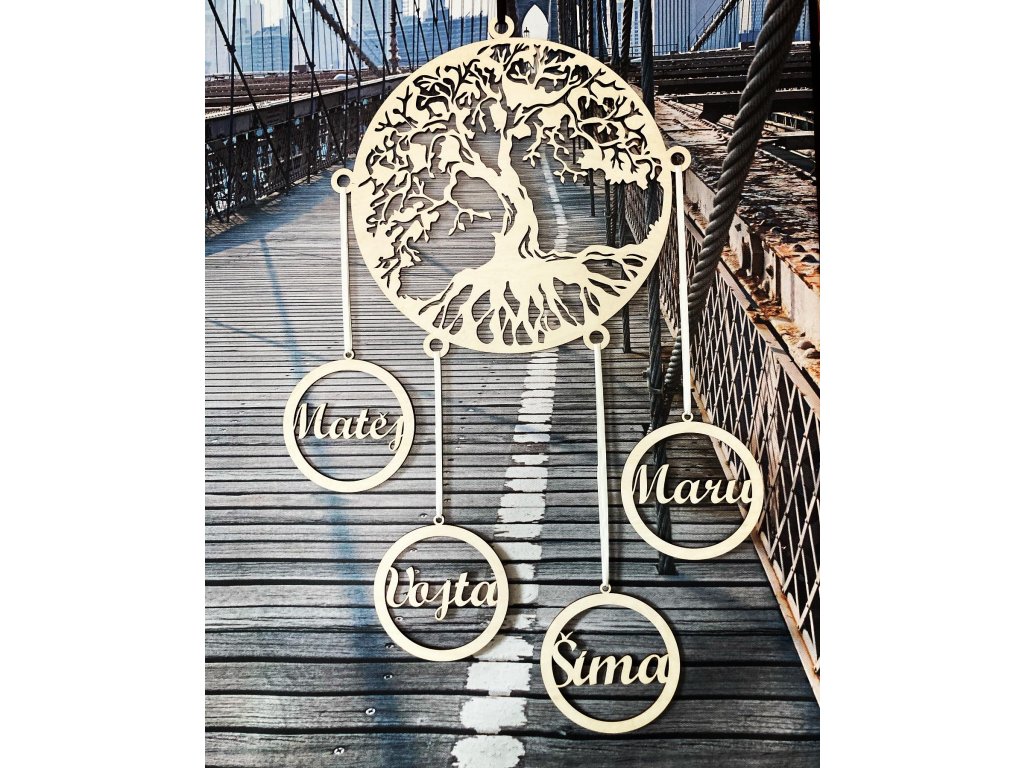 Dřevěná NON TOXIC dekorace připomínající lapač snů se Stromem života a vašimi jmény.