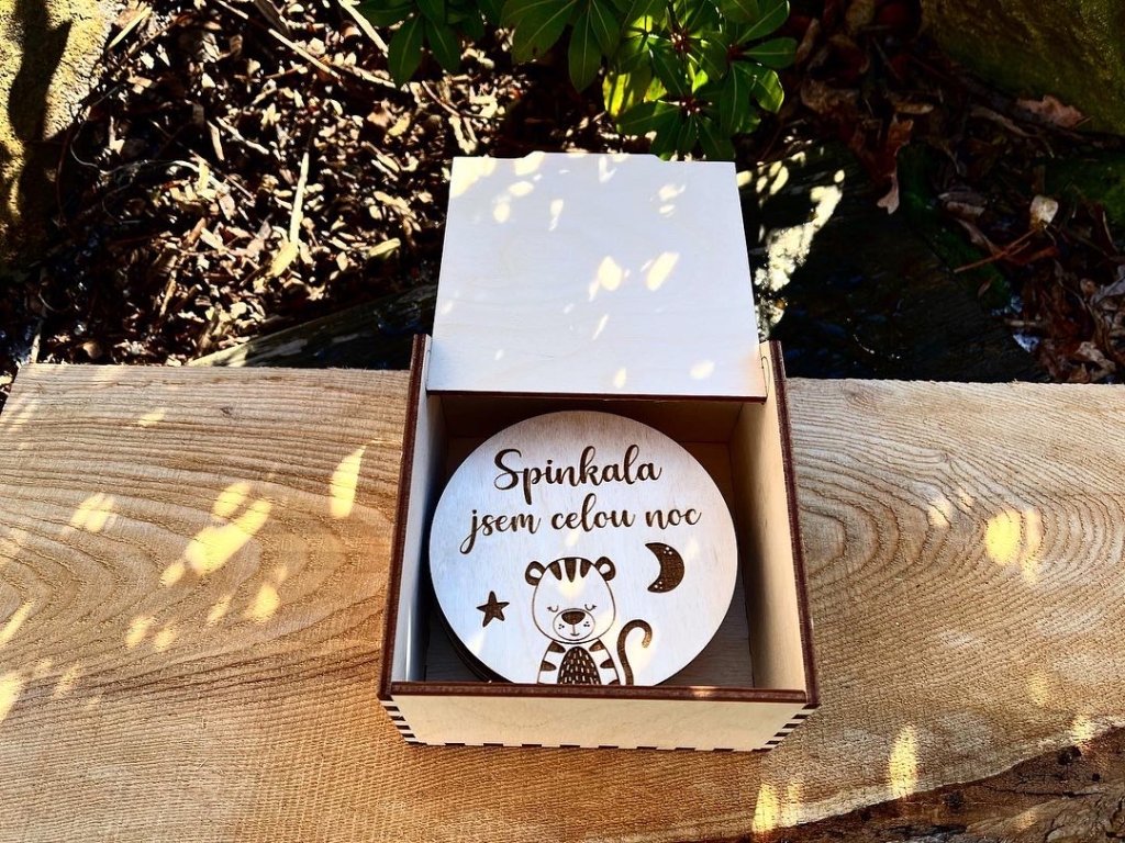 - Na krabičku je také možné doplnit třeba jméno miminka nebo změnit text..