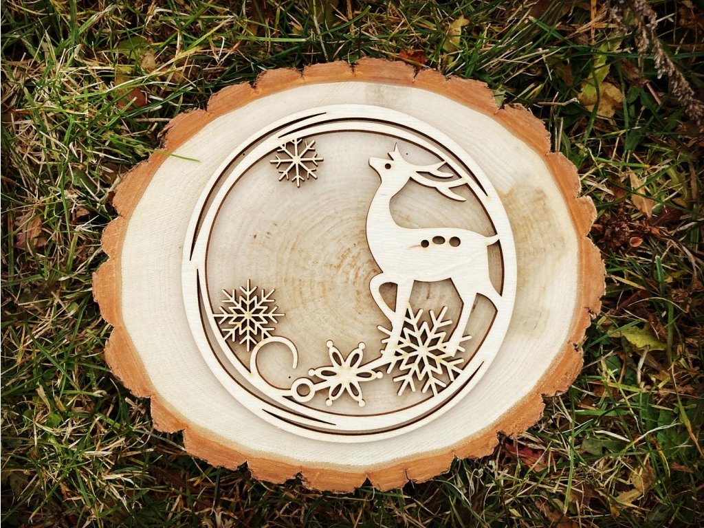 Krásná dekorace s jelínky a vločkami vypadá nádherně na okně, dveřích nebo jen tak na zdi