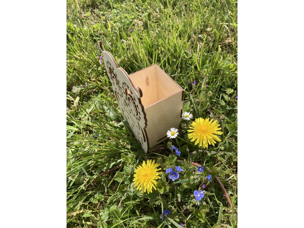 - Dřevěná krabička, pastelkovník, s motivem sovičky.
