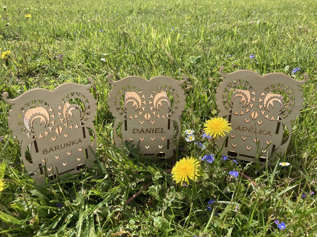 Krabička na pastelky, tužky... ve tvaru sovičky s vyřezávanými prvky. Lze jej objednat se JMÉNEM i bez :-)