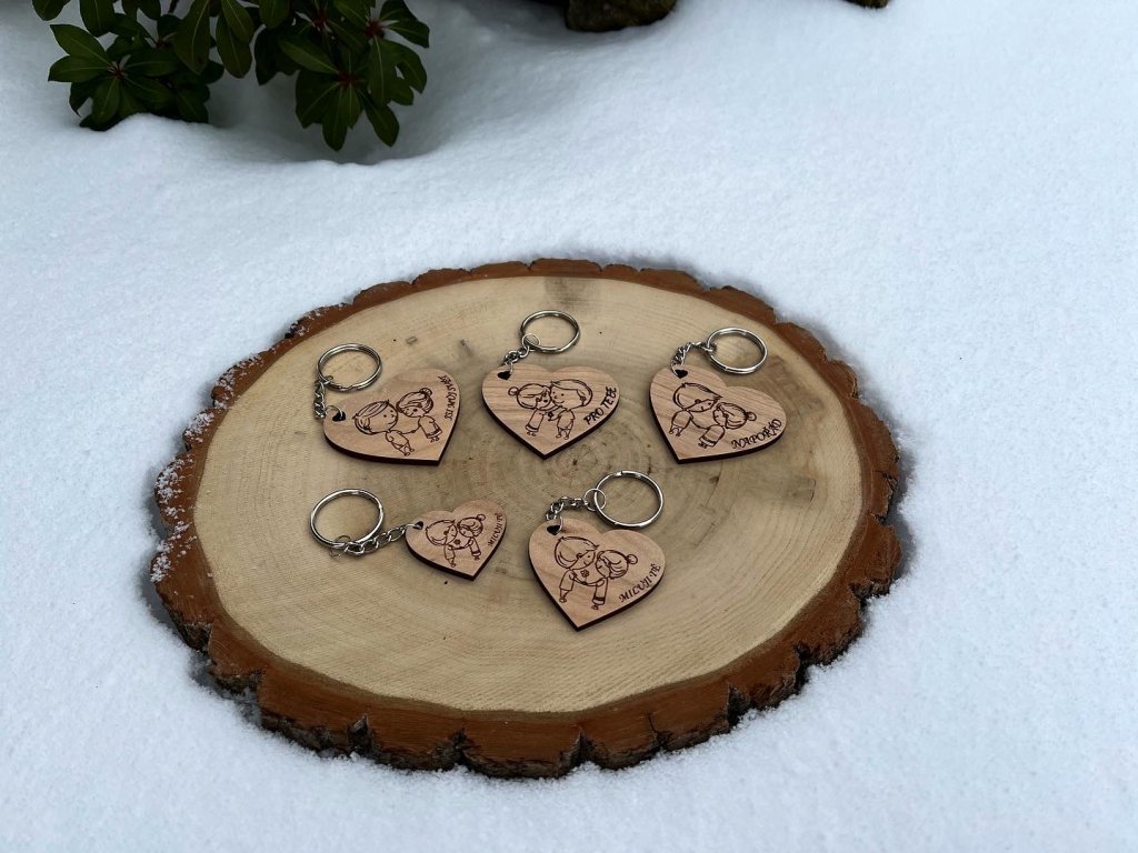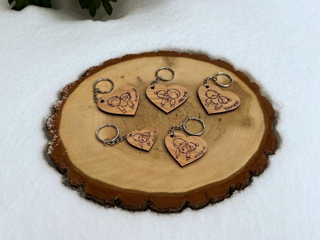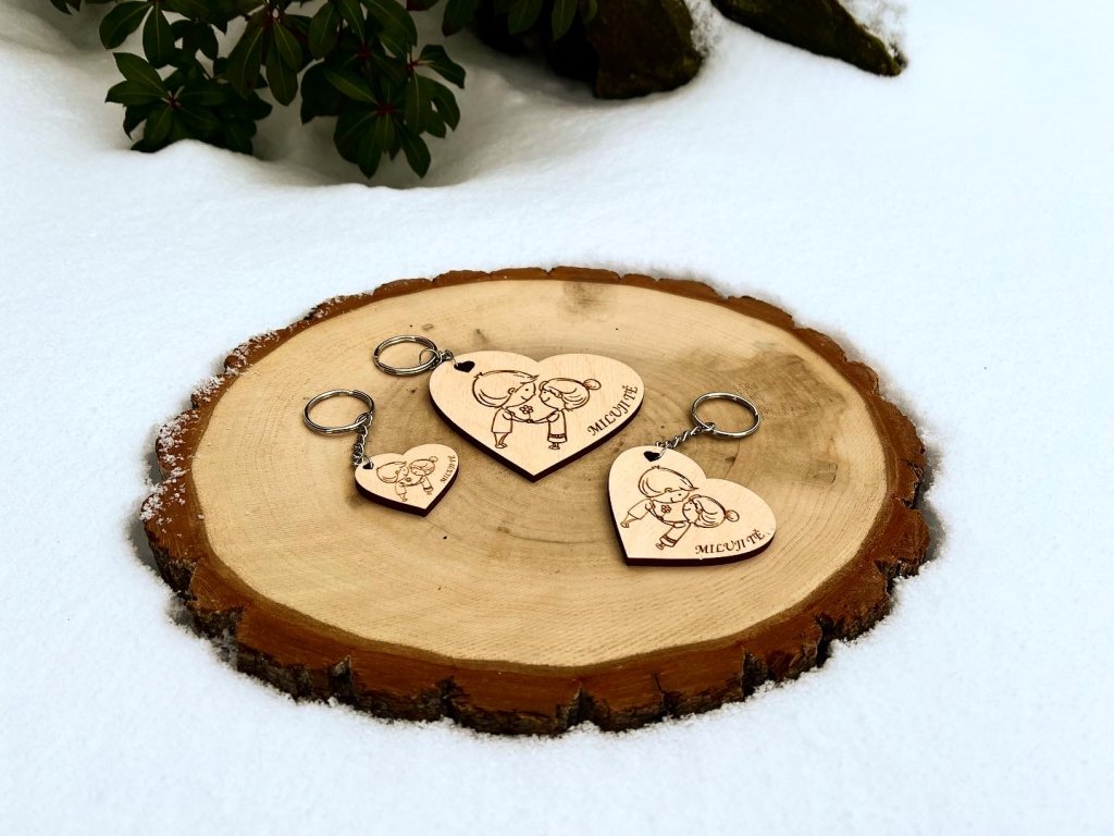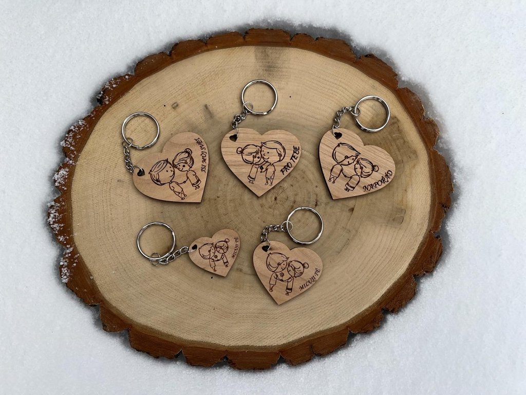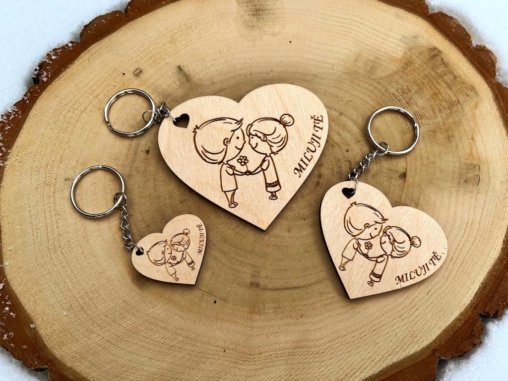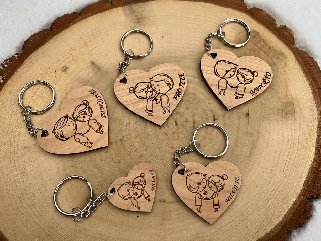 - dřevěný přívěsek srdce s originálním designem zamilovaných postaviček