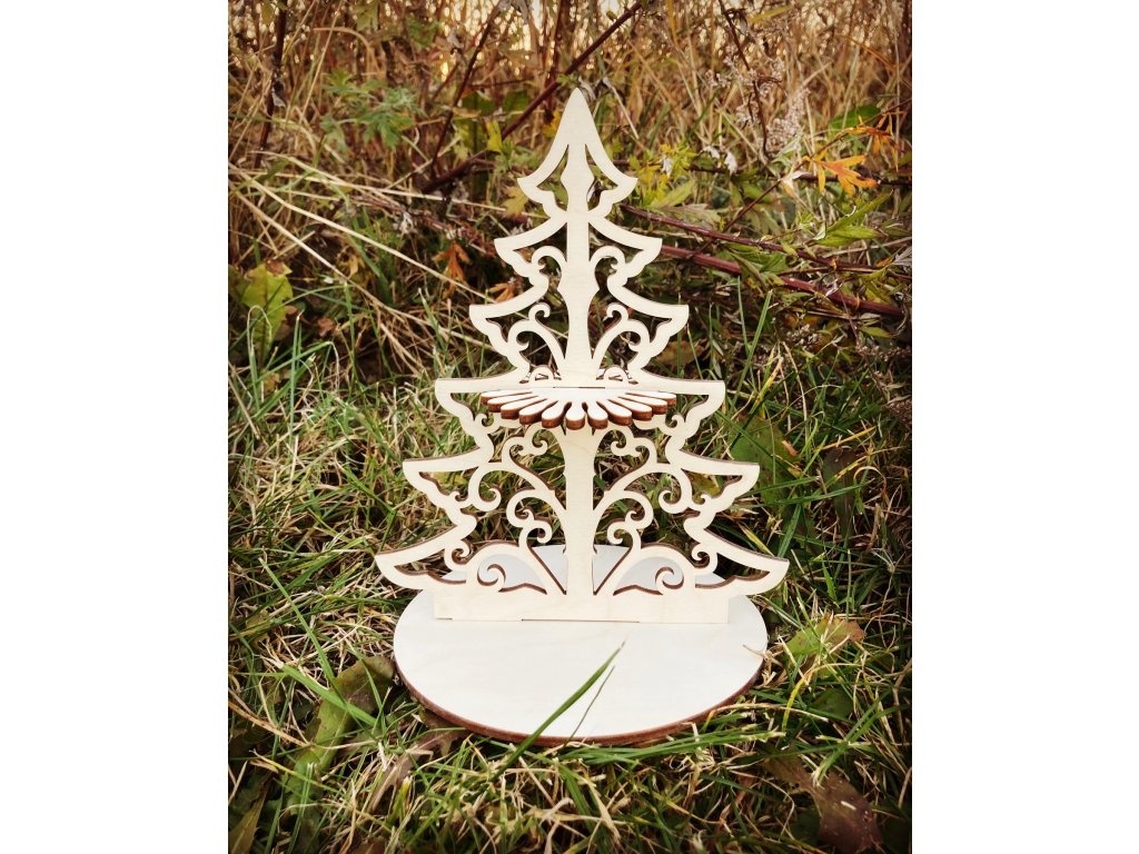 Vánoční dekorace - vyřezávaný strom Vhodný jako dekorace na okno nebo na stůl