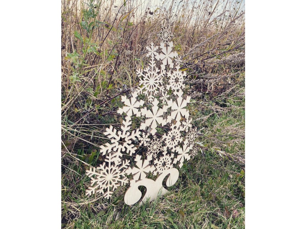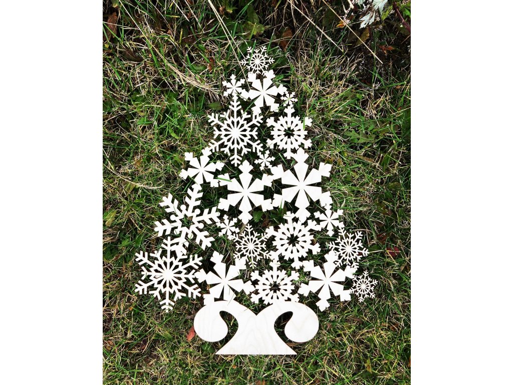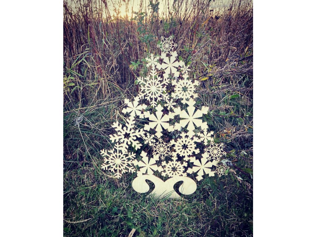 Krásný moderní vánoční stromeček a baňkami. Včetně stojánku, různé velikosti. Vánoční dřevěná dekorace, NON TOXIC.