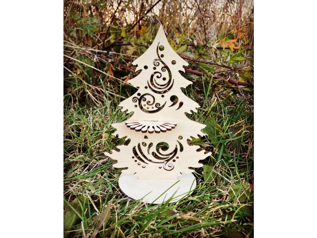 Vánoční stromek ze 3 částí. Dřevěná dekorace na postavení, včetně stojánku. Znovupoužitelné, ekologická dekorace, NON TOXIC, ručně broušeno.