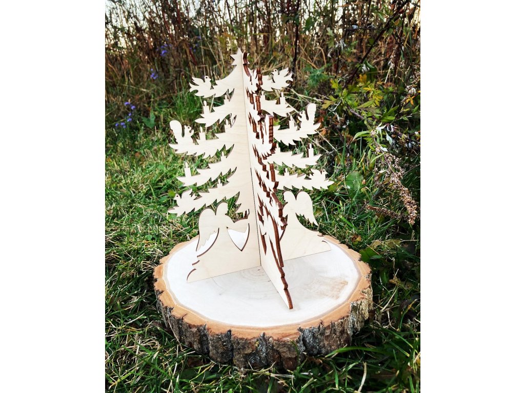 Vánoční stromek ze 3 částí. Dřevěná dekorace na postavení, včetně stojánku. Znovupoužitelné, ekologická dekorace, NON TOXIC, ručně broušeno.