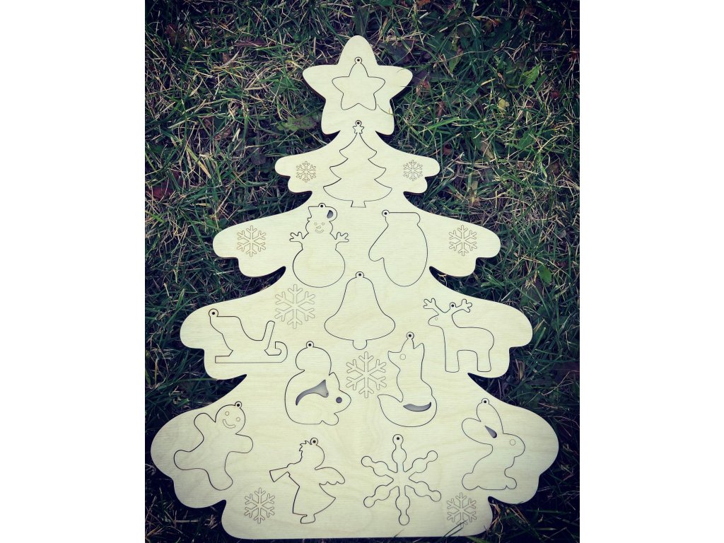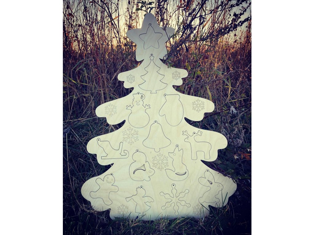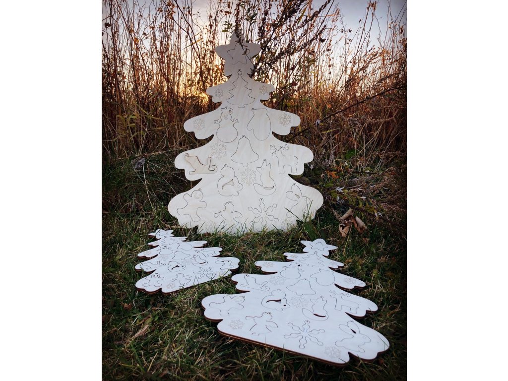Krásný moderní vánoční stromeček a baňkami. Včetně stojánku, různé velikosti. Vánoční dřevěná dekorace, NON TOXIC.