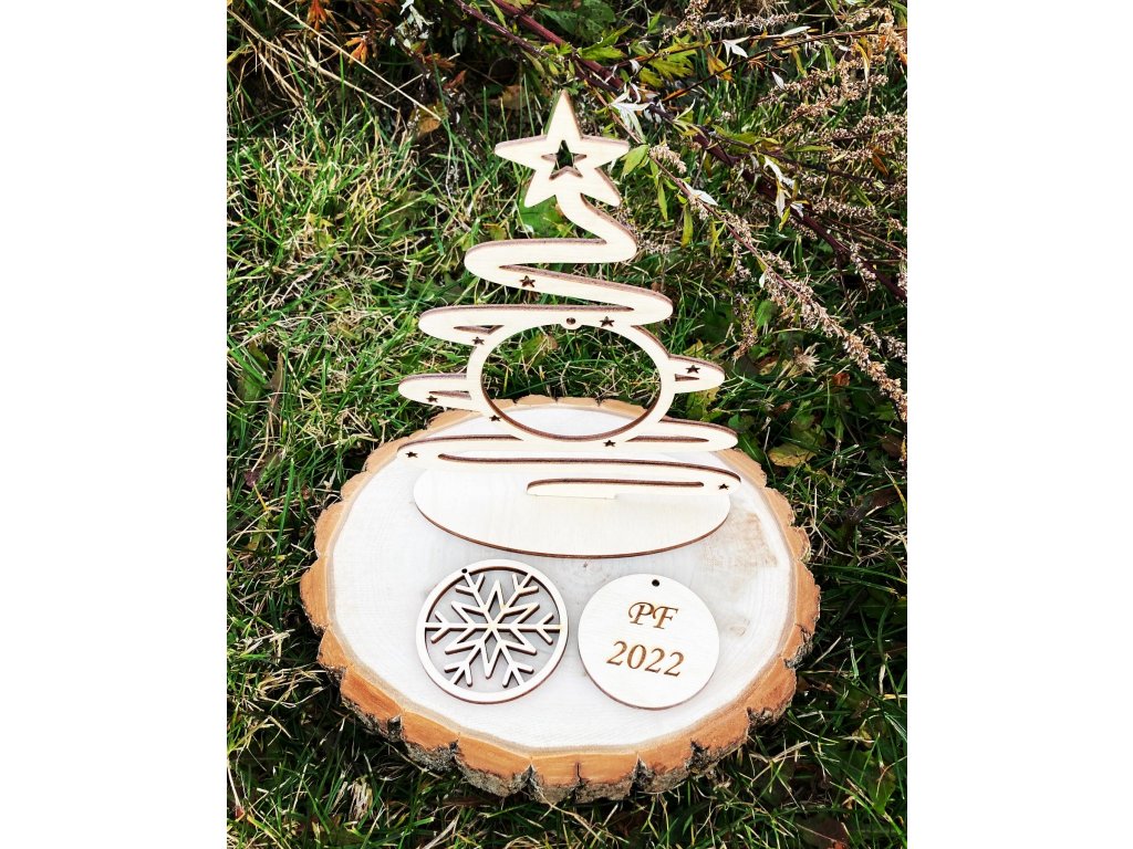 Krásný moderní vánoční stromeček a baňkami. Včetně stojánku, různé velikosti. Vánoční dřevěná dekorace, NON TOXIC.