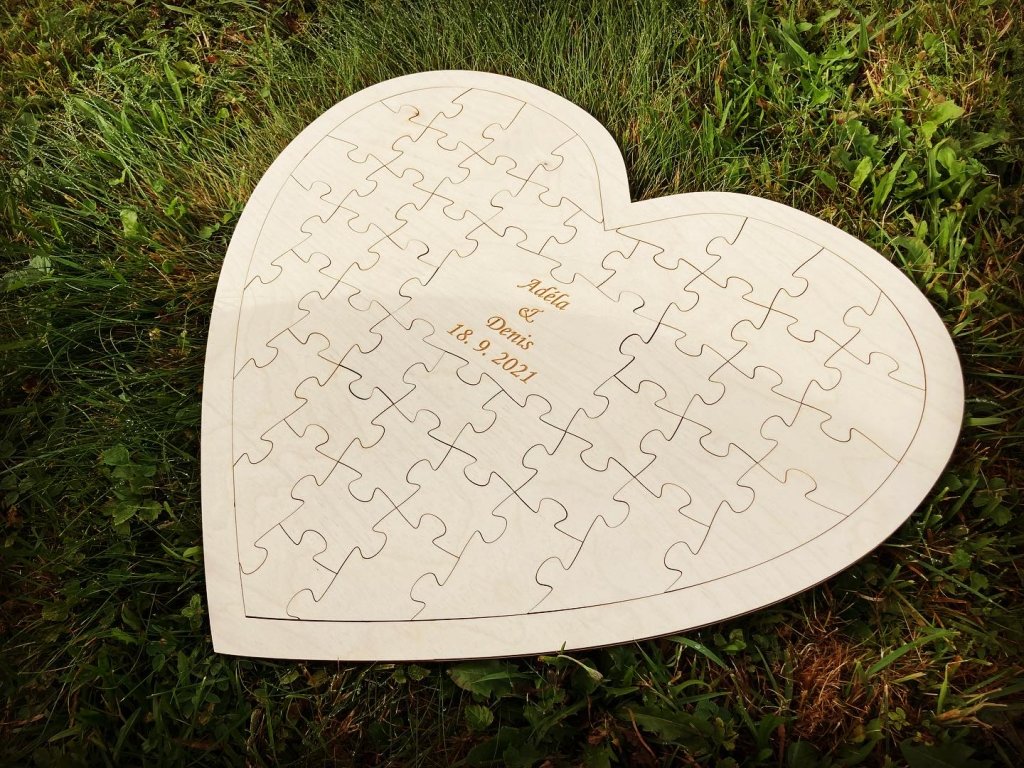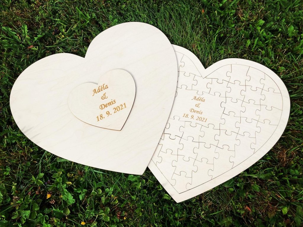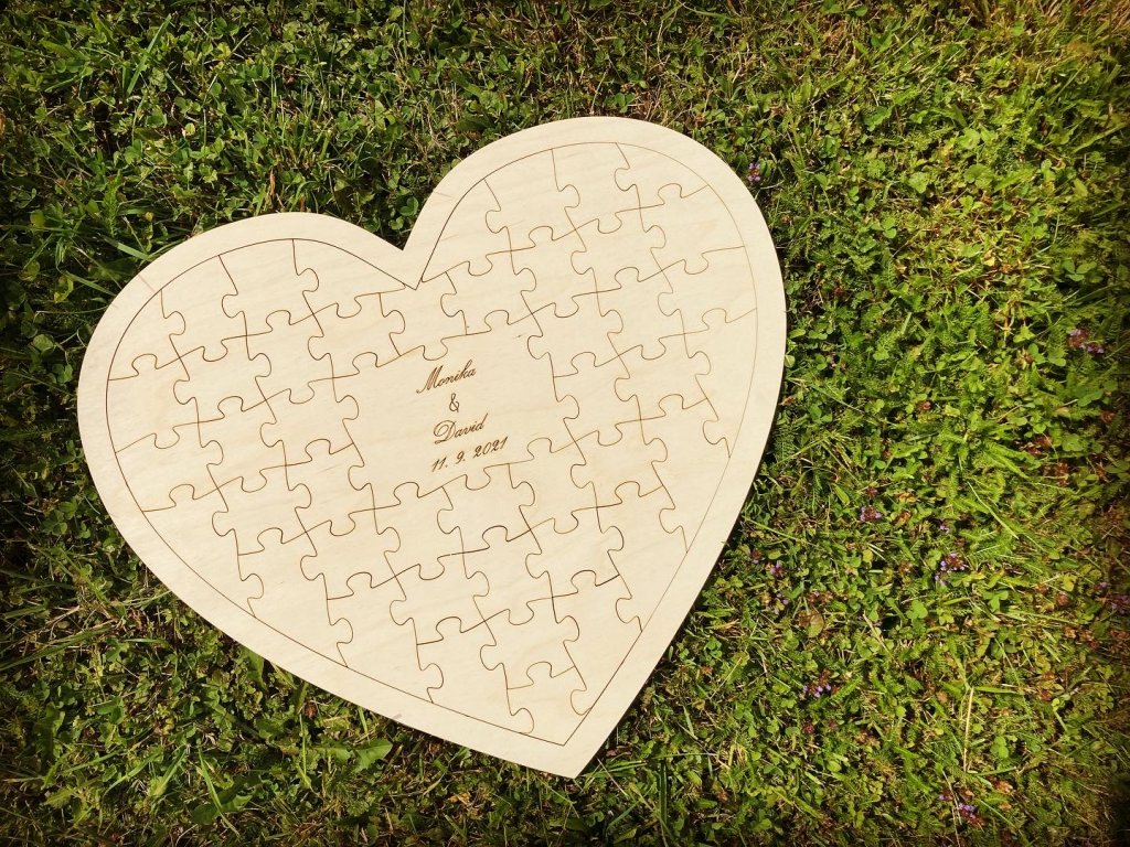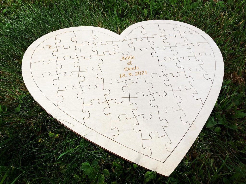 - Svatební puzzle ve tvaru srdce