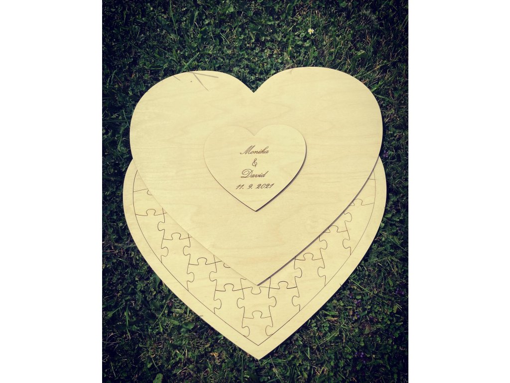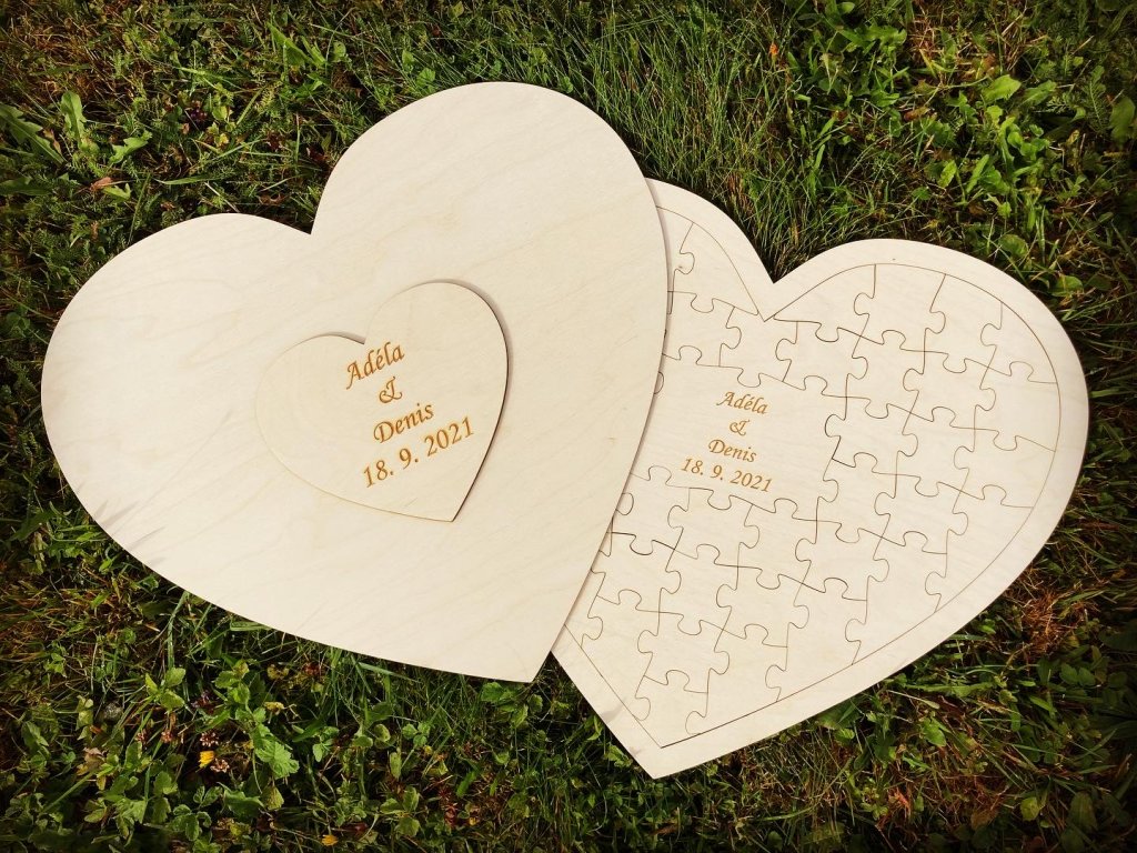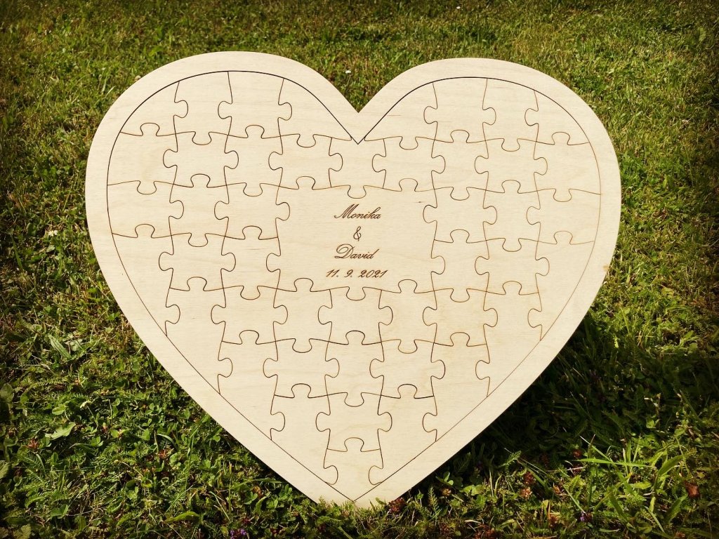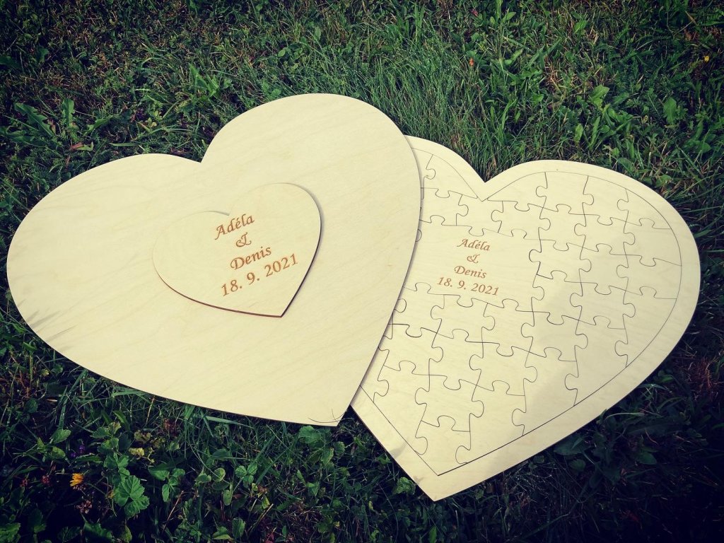 - Svatební puzzle ve tvaru srdce