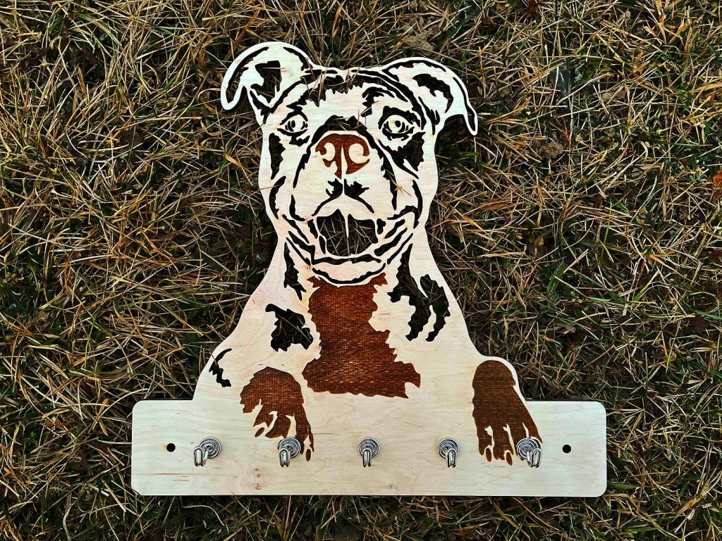 - Dřevěný věšák na klíče v podobě vašeho pejska - bulla.
