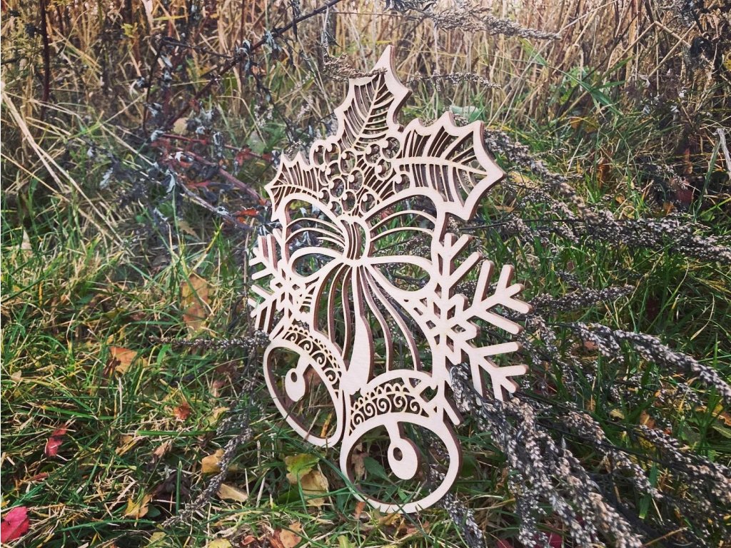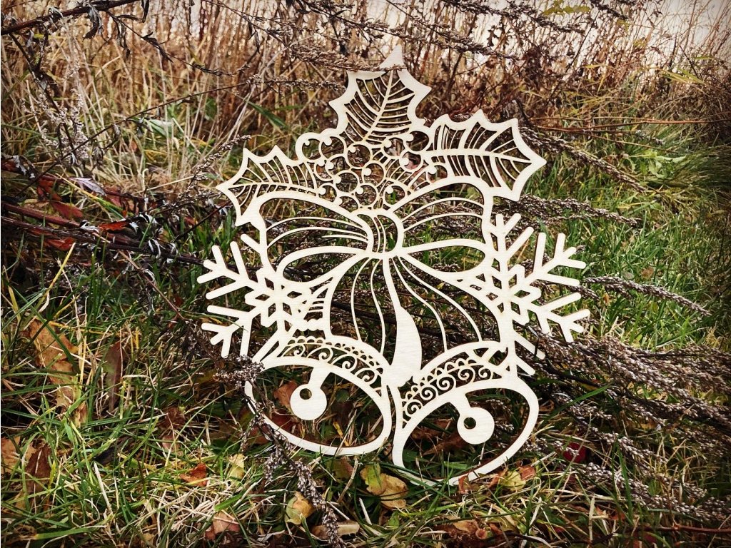 Dřevěný vyřezávaný zvonek. Krásná vánoční ozdoba nebo dekorace. Více velikostí. Ručně broušeno, non toxic.